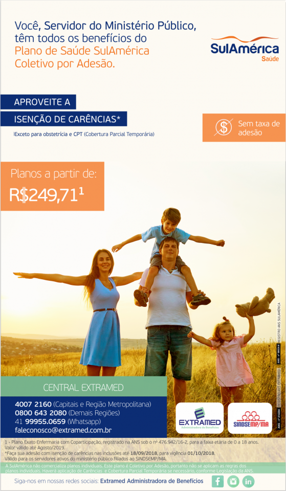 A administradora de benefícios Extramed anuncia nova campanha de redução de carência para adesões de planos da Sulamérica Saúde, marcando o início de um novo ciclo de vigência do contrato entre as duas empresas, que terá início no dia 02 de outubro.