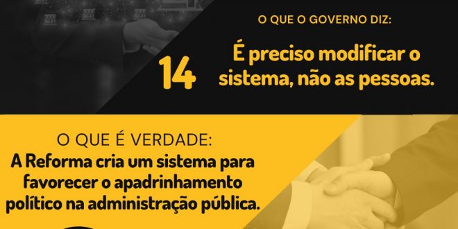 O governo diz que é preciso modificar o sistema, não as pessoas. A verdade é que a Reforma Administrativa cria um sistema para favorecer o apadrinhamento político na administração pública.