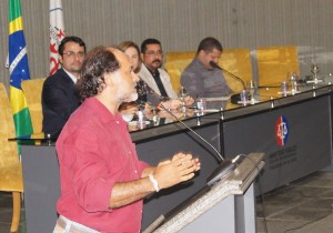 Presidente do Sindsemp/MA , Valdeny Barros, reforçando a parceria entre as duas entidades.