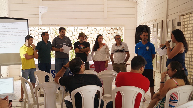 Ao final da Assembleia, foram definidos os nomes dos servidores que representarão o Sindsemp/MA no próximo encontro do FórumMP, Congressos da Fenamp e Assembleia da Ansemp, que estão previstos para serem realizados de 23 a 26 de março de 2019, na cidade de Brasília: a diretora-presidente do Sindsemp/MA, Vânia Leal, o diretor vice-presidente, Dionatã Lima, o diretor de comunicação, Fábio Barros, o coordenador da Fenamp no Maranhão, Valdeny Barros, e os servidores Cláudia Leite, Paulo Arrais, Reginaldo Faria, Marcos André Viana e Marcos Paulo Leite.