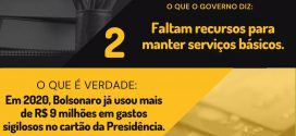 O governo diz que faltam recursos para manter serviços básicos. A verdade é que, em 2020, Bolsonaro já usou mais de R$ 9 milhões em gastos sigilosos no cartão da Presidência.