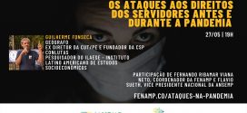 Na próxima quarta-feira (27), às 19h, a Fenamp realiza mais uma live com foco na pandemia. Esta edição discutirá sobre os ataques aos direitos dos servidores nesse período de calamidade pública. O ministrante convidado para falar do assunto é o geógrafo Guilherme Fonseca, pesquisador do Instituto Latino Americano de Estudos Socioeconômicos …