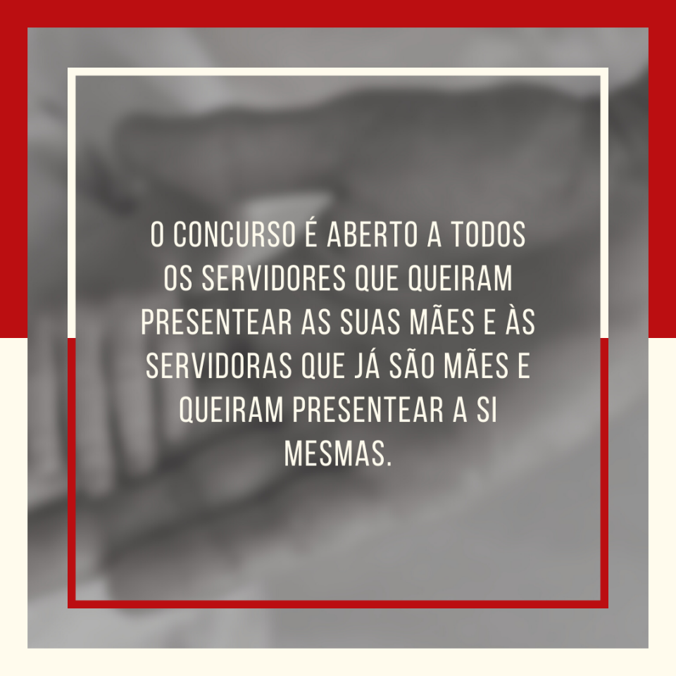 Uma das datas mais especiais do calendário se aproxima: o Dia das Mães, no próximo dia 9 de maio. Como forma simbólica de presentear as mães que fazem parte da vida de cada um de nossos filiados, o Sindsemp-MA dá início, nesta segunda-feira (26), ao concurso cultural em alusão à data, cujo prêmio para o vencedor será um vale-compras no valor de R$ 200,00 para compra de presentes na loja de sua preferência. Para participar, é fácil.