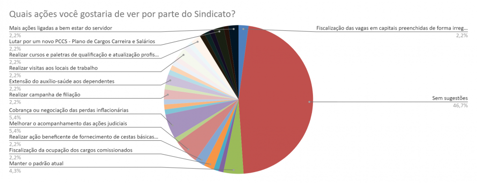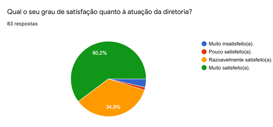 Fizemos perguntas relacionadas à satisfação com a atuação da diretoria, sugestão de ações, satisfação com a comunicação e sugestões para uma comunicação mais transparente. Ao final, sorteamos um vencedor dentre os nomes dos quase 90 servidores participantes para receber o valor de R$ 200,00 – uma forma simbólica de agradecermos a participação de todos.