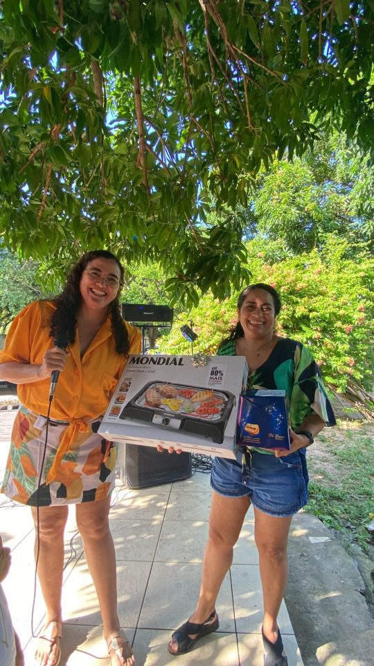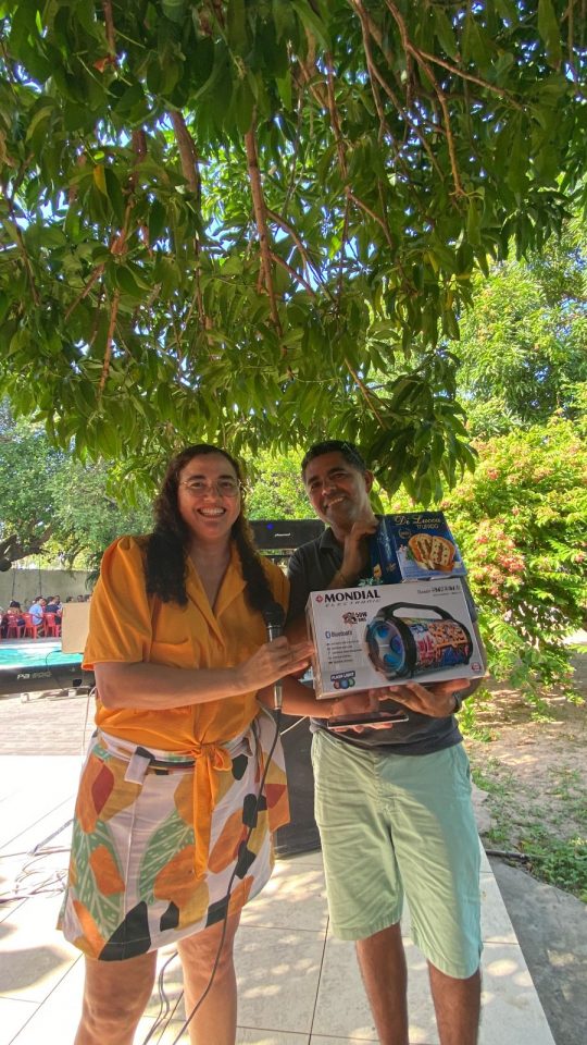 Após o almoço, a diretora-presidente da atual gestão, Vânia Leal Nunes, junto à secretária executiva, Aline Maria, sortearam brindes para os associados presentes, que incluíam vinhos, uma caixa térmica, uma caixa de som, um aparelho de jantar, um jogo de cama queen e uma churrasqueira elétrica. Os servidores sorteados comemoraram os presentes e agradeceram à gestão.