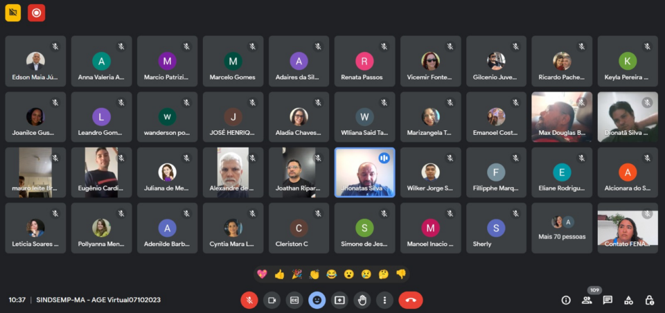 No último dia 7 de outubro, o Sindsemp-MA reuniu a Diretoria Executiva com mais de uma centena de servidores de todo o estado em nossa Assembleia Geral Extraordinária, que, desta vez, foi virtual, e discutiu a mobilização pela reposição inflacionária, dentre outros assuntos.