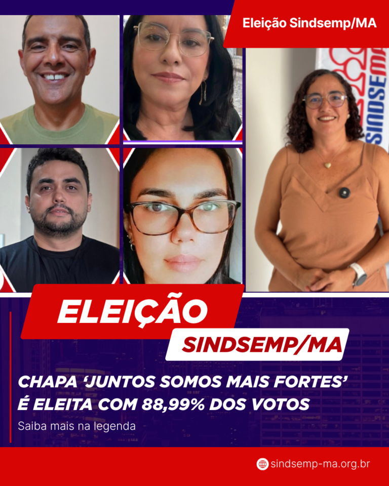 ▪️ A Eleição Sindsemp/MA chegou ao fim, após o prazo de votação encerrado às 17h desta quarta-feira (25). Assim, a Chapa Juntos Somos Mais Fortes foi eleita para conduzir o SINDSEMP/MA no biênio 2026–2028, após a conclusão do processo eleitoral realizado de forma totalmente virtual entre os dias 23 e 25 de fevereiro.