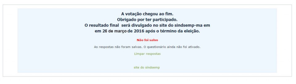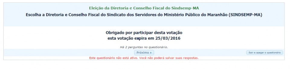 A votação ficará aberta a partir das 9h de quarta-feira (23) e vai até as 17h de sexta (25). O resultado final será divulgado no site do Sindsemp/MA, no dia 26 de março (sábado).