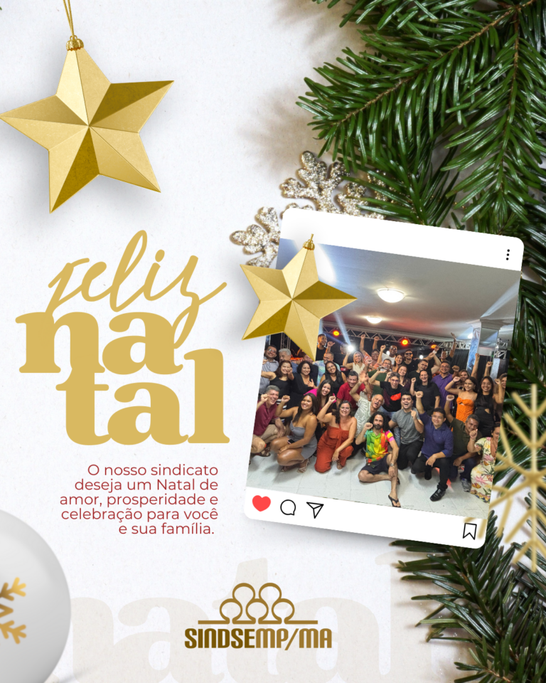 O Sindsemp/MA deseja a todos os servidores e servidoras um Natal de serenidade, saúde e união. Que 2026 nos encontre ainda mais juntos, firmes na defesa de direitos e na construção de um serviço público cada vez mais valorizado.