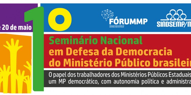 O Sindsemp/MA informa que será liberada a participação dos servidores para o 1° Seminário Nacional em Defesa da Democracia do Ministério Público Brasileiro, a ser realizado nos dias 19 e 20 de maio, na sede do Sindicato.