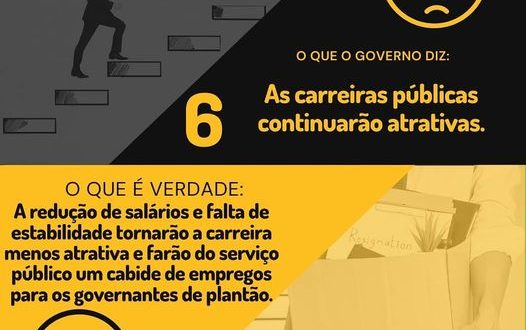 O governo diz que as carreiras públicas continuarão atrativas. A verdade é que a redução de salários e falta de estabilidade tornarão a carreira menos atrativa e farão do serviço público um cabide de empregos para os governantes de plantão.