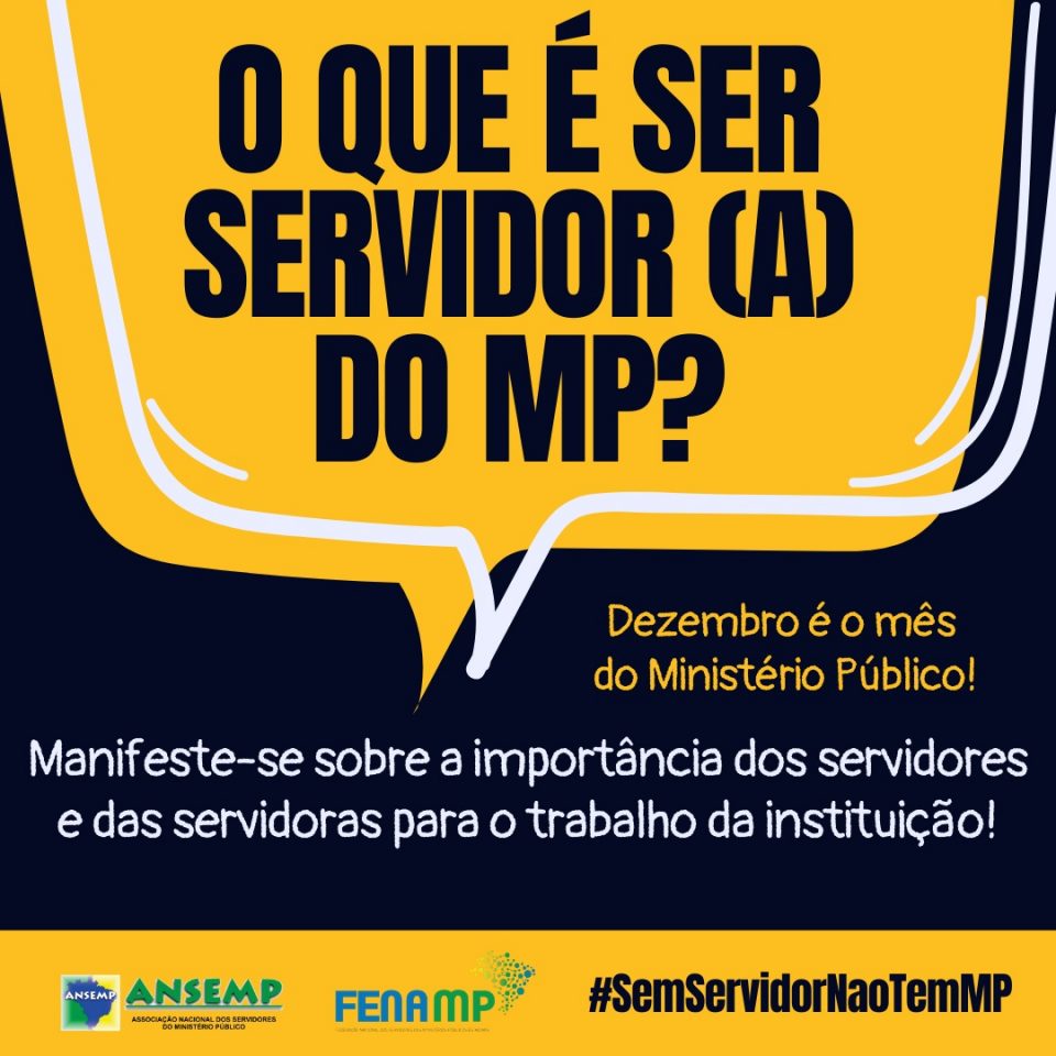 A FENAMP, ANSEMP e o SINDSEMP/MA estão preparando uma campanha para comemorar o Mês do Ministério Público e valorizar o papel dos (as) servidores (as) da instituição. O objetivo é reunir vídeos, fotos e depoimentos que respondam à pergunta: “O que é ser servidor/servidora do Ministério Público?”.