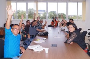 Na ocasião também foi realizado encontro de diálogo com a Administração Superior da PGJ, momento em que foram discutidos temas relacionados à criação do auxílio-saúde para servidores, mudança de nomenclatura do cargo Técnico Ministerial – Execução de Mandados, demandas pautadas na proposta de revisão do Plano de Cargos e Carreiras (PCC’s), e reposição inflacionária.