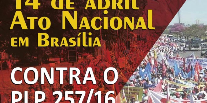 Nesta quinta-feira (14), entidades sindicais estão reunidas durante todo o dia em Brasília/DF, em ato contra o Projeto de Lei Complementar (PLP) 257/2016. A manifestação conta com representantes de diversas categorias dos serviços públicos federais, estaduais e municipais em protesto ao projeto que, entre outras medidas, prevê o congelamento de salários, suspensão dos concursos públicos, não pagamento de progressões e outras vantagens (como gratificações), revisão dos Regimes Jurídicos dos Servidores, elevação das alíquotas previdenciárias, privatizações, venda de bens públicos e aumento da precarização e da terceirização dos serviços públicos ofertados à população.
