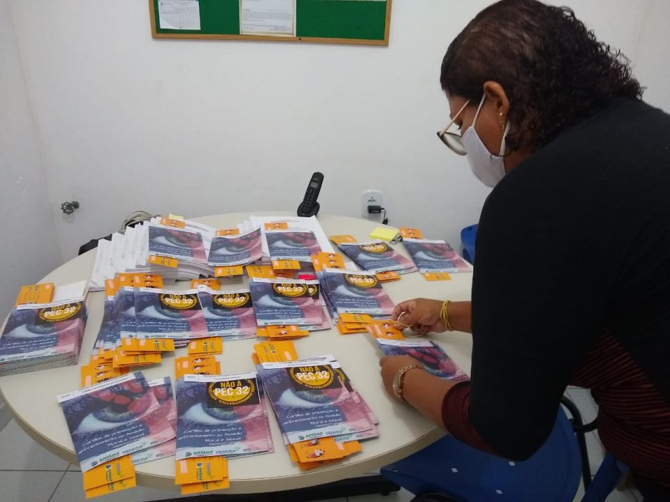 O Sindsemp-MA iniciou a a separação e distribuição de diversos materiais que visam a conscientização dos servidores sobre assédio moral e sexual, exercícios para evitar e combater a LER/DORT, e sobre a PEC 32 (Reforma Administrativa).