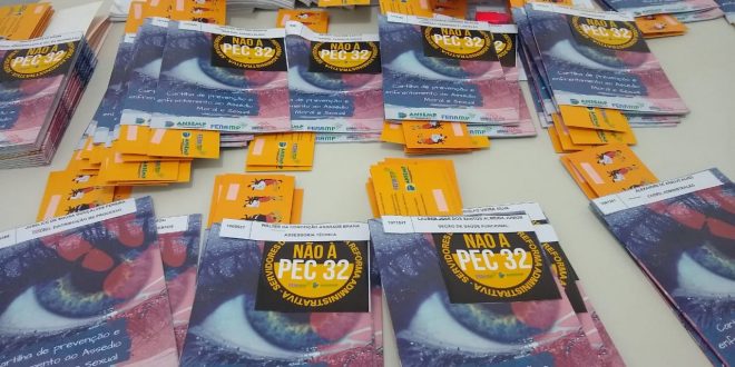 Os servidores também irão receber um adesivo de combate à PEC 32 – Reforma Administrativa.