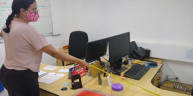 A diretora-presidente do Sindsemp/MA, Vânia Leal, tem visitado as unidades do MP/MA e, verificando irregularidades, tem conversado com os gestores de cada setor para que haja observação rigorosa das determinações de biossegurança, especialmente em relação ao distanciamento social de dois metros entre as estações de trabalho, disponibilização de álcool em gel nas salas e corredores, assim como a disponibilização de protetor facial para os recepcionistas, que atuam diretamente com o público.
