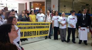 Nesta sexta-feira (31), o Sindsemp/MA e a Fenamp uniram-se a entidades sindicais e autoridades em ato público em defesa da Justiça do Trabalho. A mobilização foi realizada na sede do Tribunal Regional do Trabalho (TRT) e faz parte da agenda nacional de protestos contra a Reforma Trabalhista, o projeto de terceirização e consequente precarização das relações de trabalho.