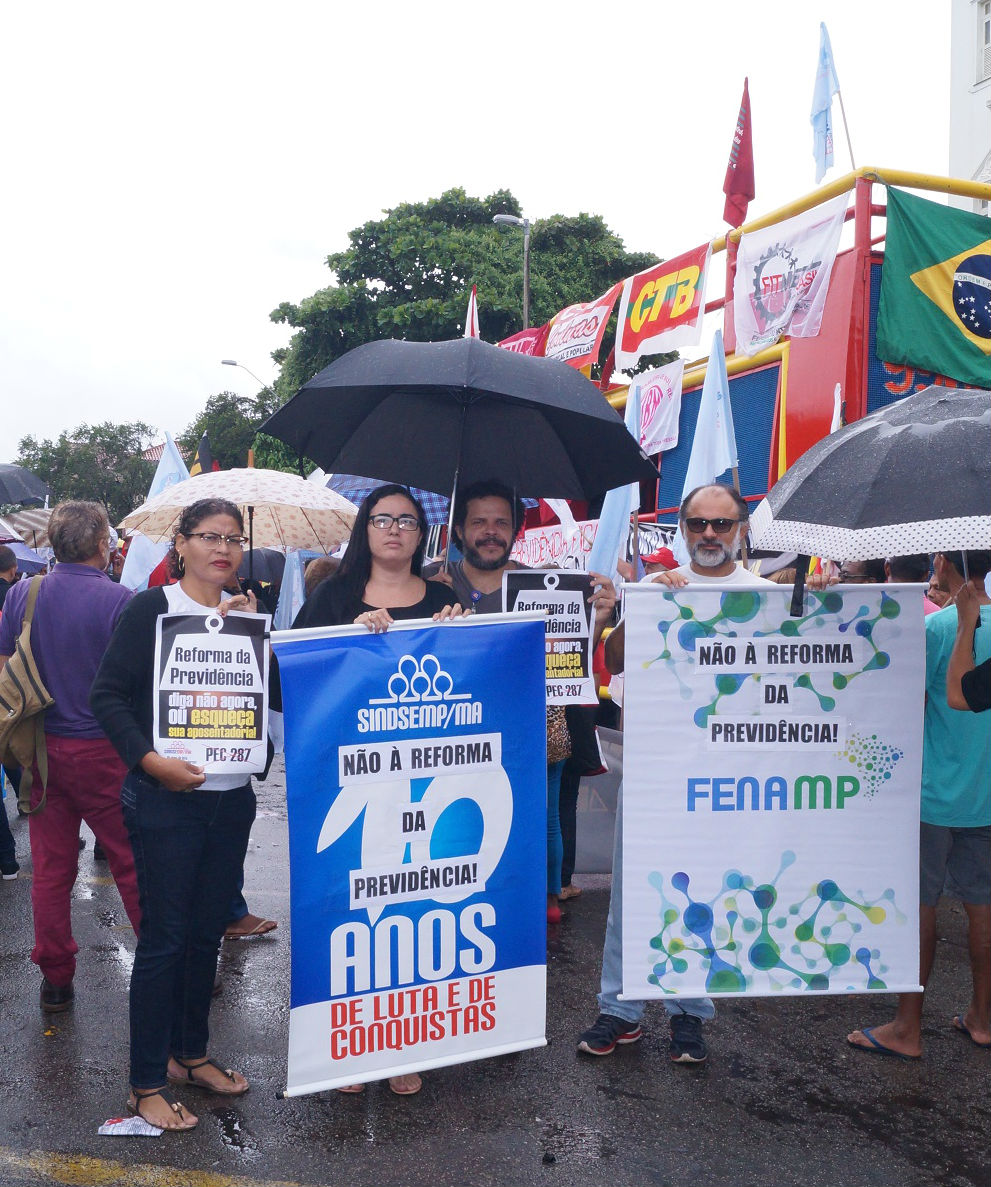 Na manhã desta quarta-feira (15), o Sindsemp/MA e a Fenamp juntaram-se a entidades sindicais de várias categorias no protesto contra a Reforma da Previdência e Trabalhista, propostas pelo governo federal. Com concentração da Praça Deodoro, os trabalhadores seguiram pelas ruas do Centro em direção ao prédio da Previdência, no Parque do Bom Menino.