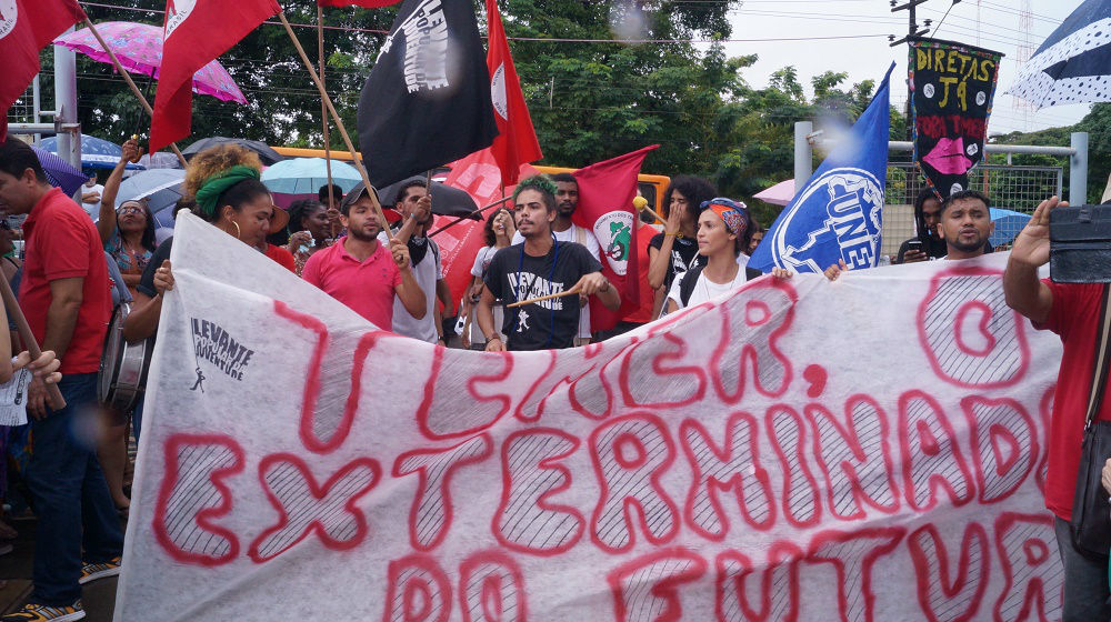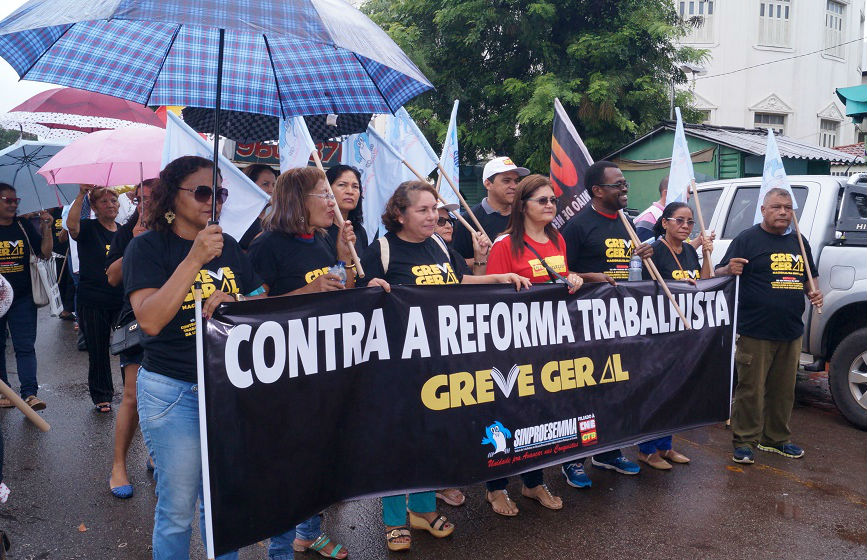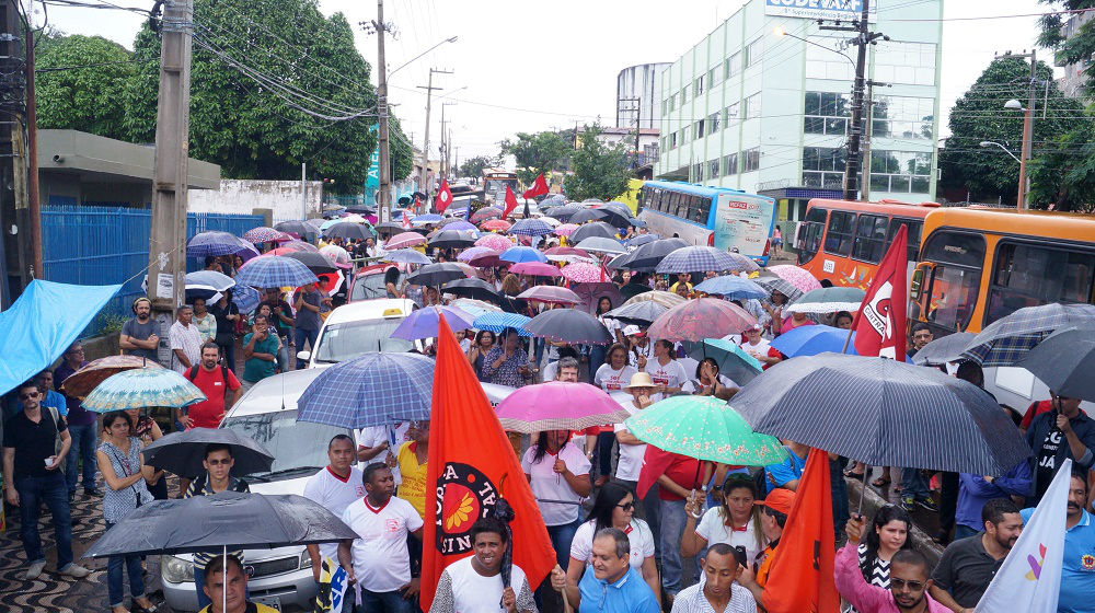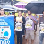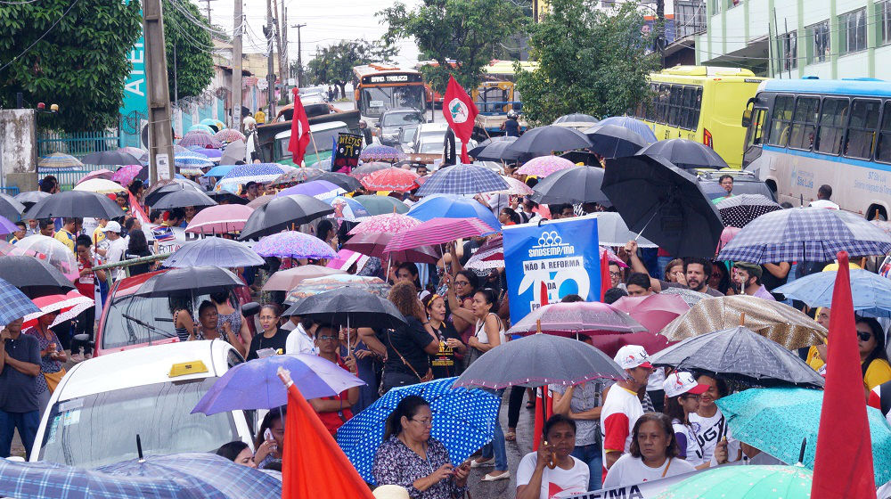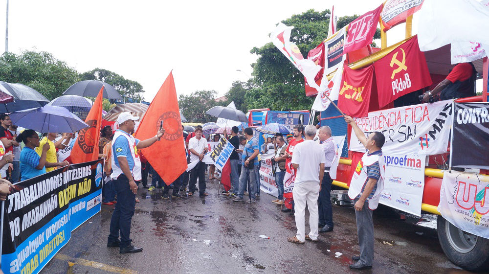Mobilização – Em São Luís, o protesto reuniu representantes dos sindicatos dos professores (Sinproesemma), dos hoteleiros (Sindhoteis/MA), dos rodoviários (Sttrema), dos vigilantes (Sindvig/MA), dos servidores federais (Sindsep/MA), assim como dos Correios (Sintect/MA) e professores da Universidade Federal do Maranhão (Apruma).