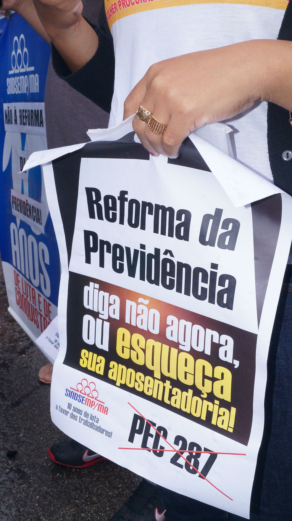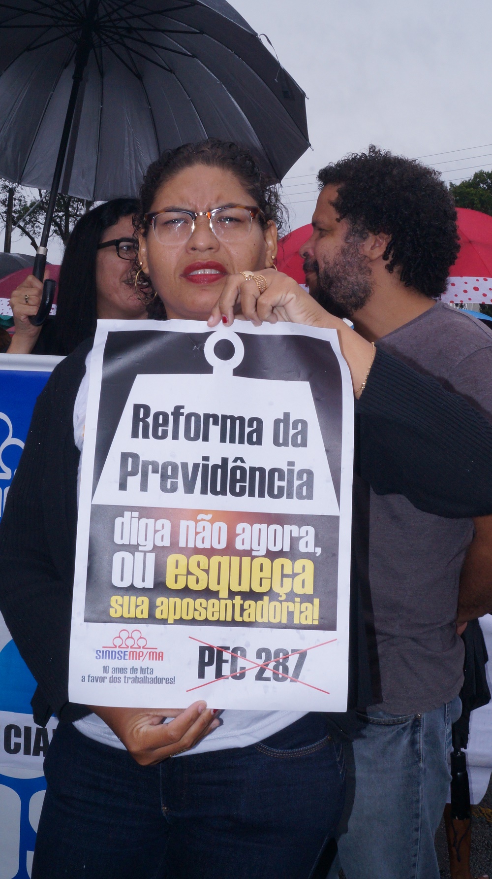 Para a presidente do Sindsemp/MA, Vânia Leal, a Reforma Previdenciária é um insulto aos trabalhadores: “Nós não podemos pagar pela crise gerada pelos próprios governantes. A Reforma da Previdência nos obrigará a trabalhar até a morte, pois a idade mínima para aposentadoria passará para 75 anos de idade, sendo esta a média da expectativa de vida dos brasileiros. No caso dos maranhenses, o cenário torna-se pior, pois nossa expectativa é de apenas 70 anos”, destacou.