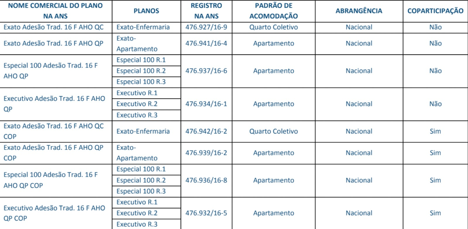Informações sobre os planos disponibilizados pela Sulamérica – coletivos por adesão