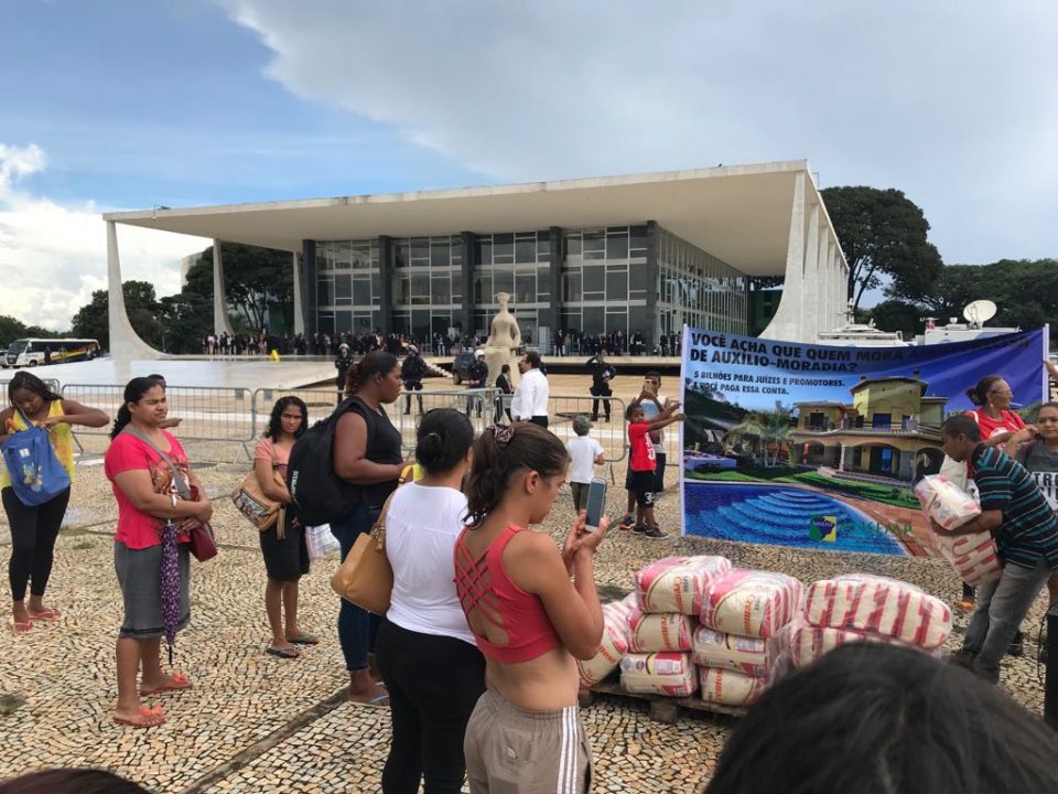 Reunidos em frente ao Supremo Tribunal Federal (STF), em Brasília/DF, lideranças da Fenamp, Ansemp, Fenajufe, Fenajud e do Movimento Resistência Popular realizaram ato de protesto contra o auxílio-moradia pago a magistrados e membros do Ministério Público. A mobilização foi feita no dia 22 de março, data em que deveriam ser julgadas as Ações Diretas de Inconstitucionalidade (ADI) que questionam tal privilégio, dentre as quais a de número 5645, de autoria da Ansemp.
