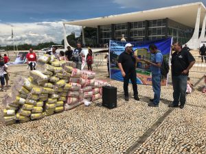 Durante o protesto, as entidades levaram alimentos equivalentes ao valor de R$ 4.377,00, mostrando a quantidade de comida que pode ser comprada com o valor do auxílio-moradia recebido por juízes, desembargadores e membros do MP. Os alimentos foram doados ao Movimento Resistência Popular, que luta pelo direito à moradia na Capital Federal, como forma de chamar a atenção para a situação de desigualdade em que vive grande parte da população e para a injustiça que é pagar auxílio-moradia para quem já tem muito.